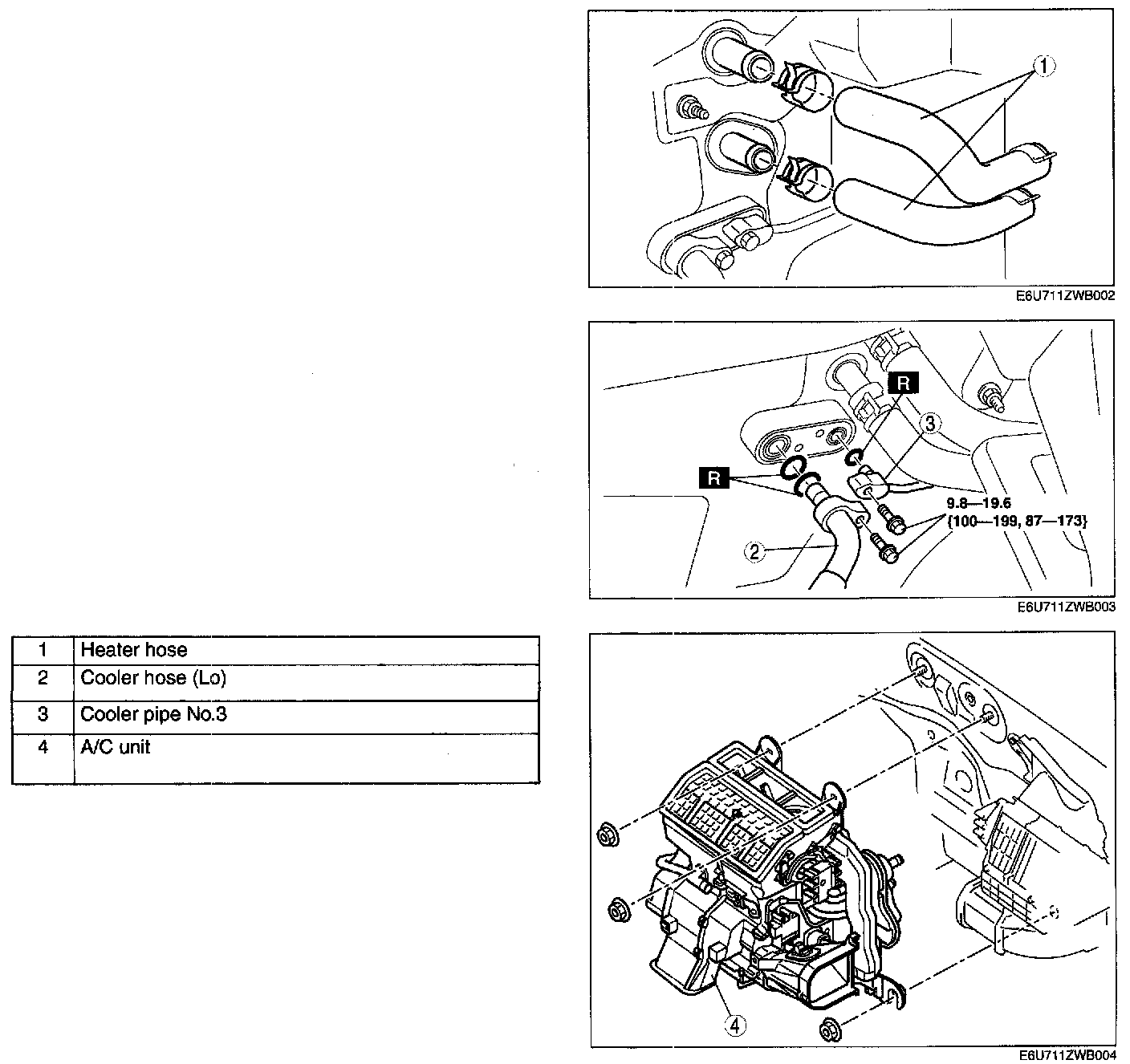 6. Remove in the order indicated in the table. Do not allow compressor oil to spill.