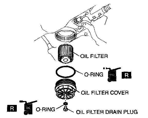 11. Tighten the oil filter cover and the oil filter drain plug.