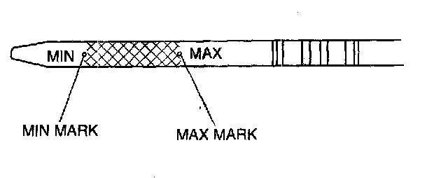4. Remove the dipstick and verify that the oil level is between the MIN and MAX marks on the dipstick and inspect the engine oil condition.