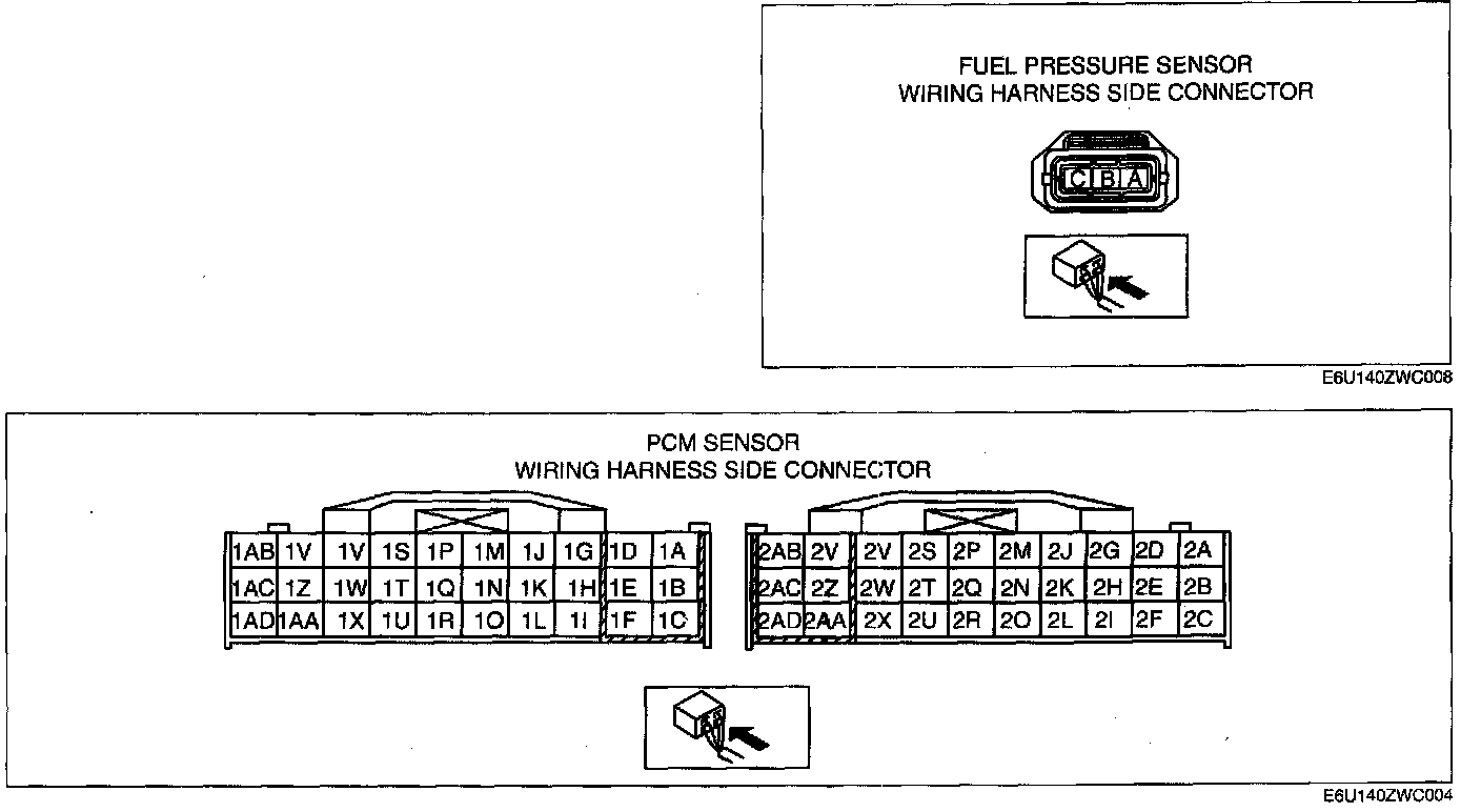 - Fuel pressure sensor terminal A and PCM terminal 2H