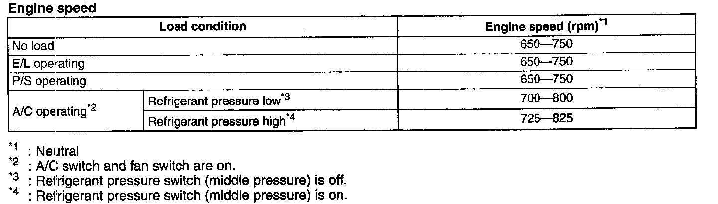 NOTE: Excludes temporary idle speed drop just after the loads are turned on.