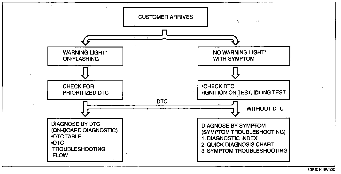 FOREWORD [L3 WITH TC]When the customer reports a vehicle malfunction, check the malfunction indicator lamp (MIL) indication and diagnostic trouble code (DTC), then diagnose the malfunction according to following flowchart.