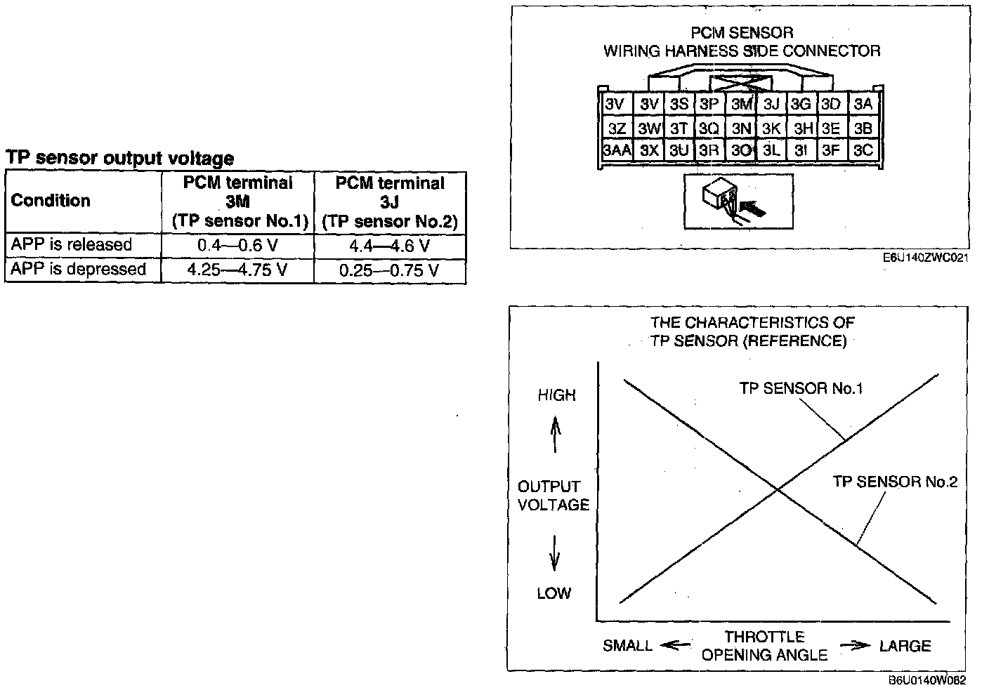 4. Verify that the PCM terminal 3J and 3M change smoothly while throttle valve is gradually opened.