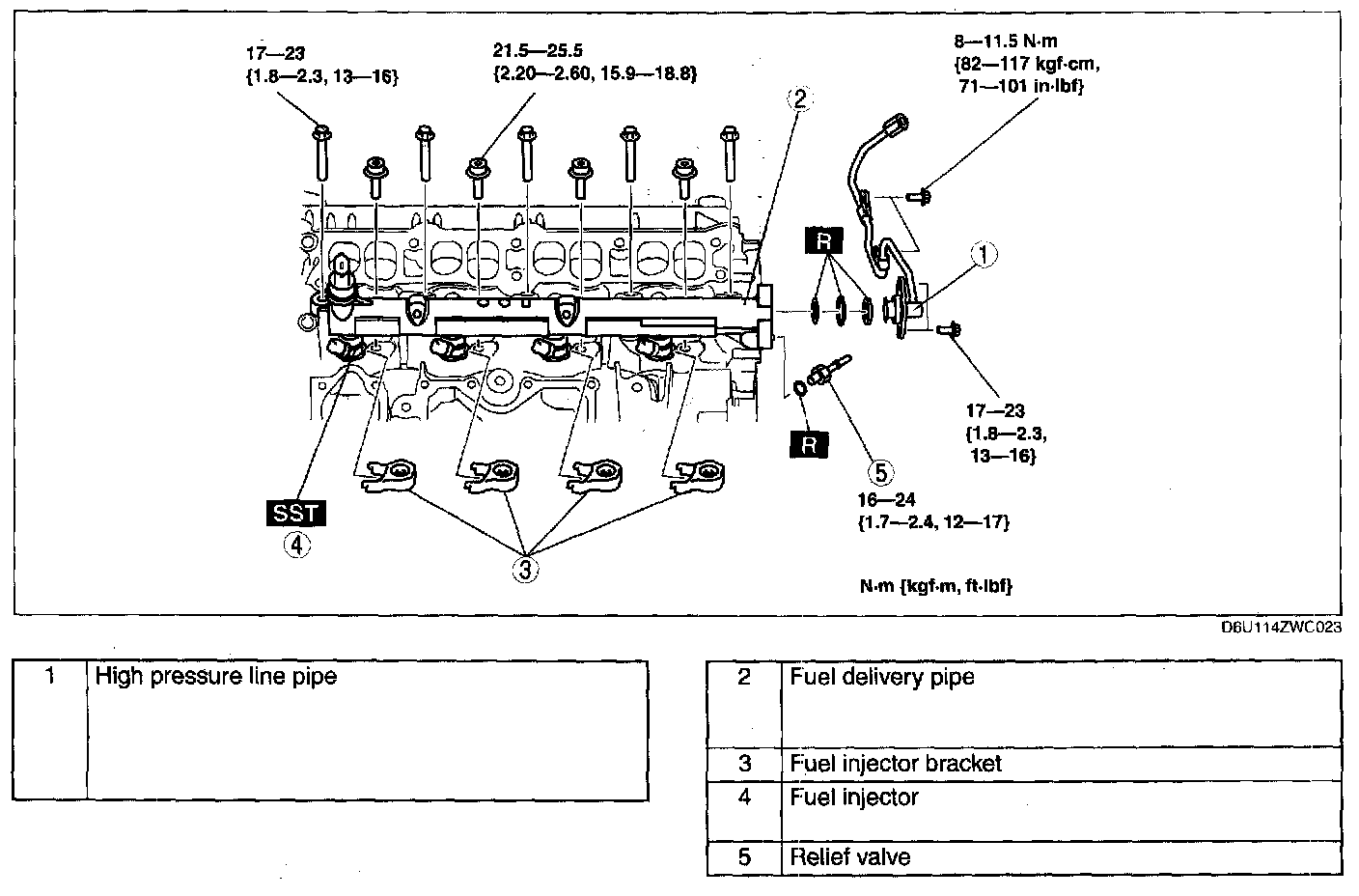Tightening torque: 17-23 N.rn {1.8-2.3 kgf.m, 13-16 ft.lbf}