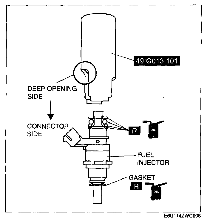 FUEL INJECTOR REMOVAL/INSTALLATIONCAUTION: Disconnecting/connecting the quick release connector without cleaning it may cause damage to the fuel pipe and quick release connector. Always clean the quick release connector joint area before disconnecting/connecting using a cloth or soft brush, and make sure that it is free of foreign material.