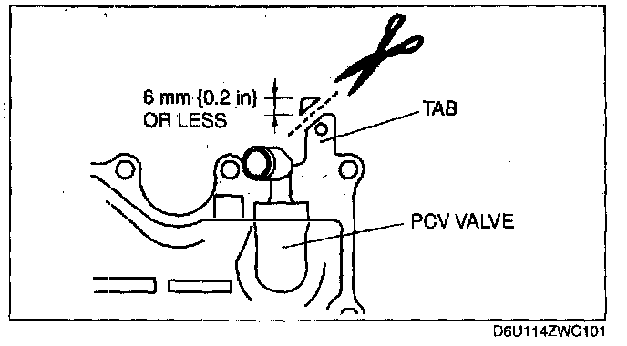 NOTE: If fuel injector No.3 contacts the oil separator, cut the tab on the oil separator as shown in the figure. Carefully cut the tab so that the oil separator is not deformed or damaged, with no clearance on the mating surfaces of the oil separator and engine.