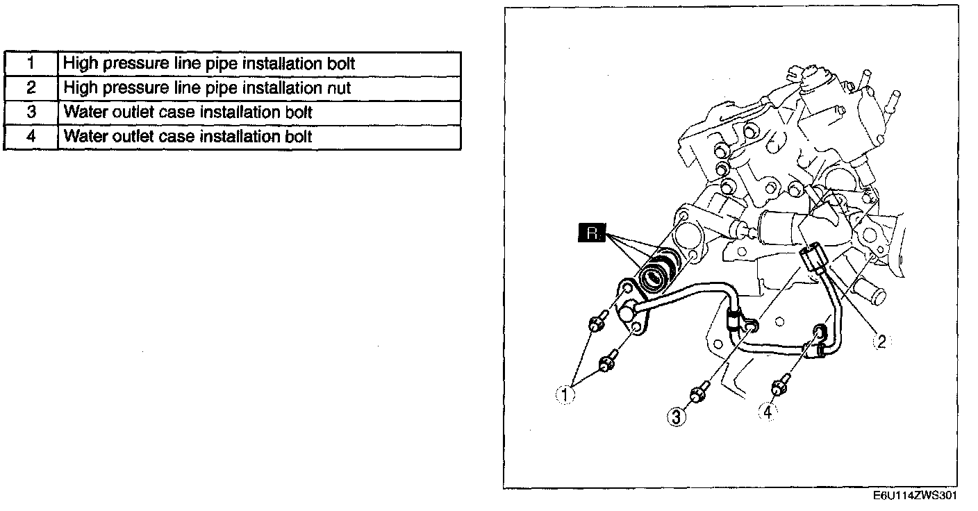 2. Tighten the high pressure line pipe installation bolts.