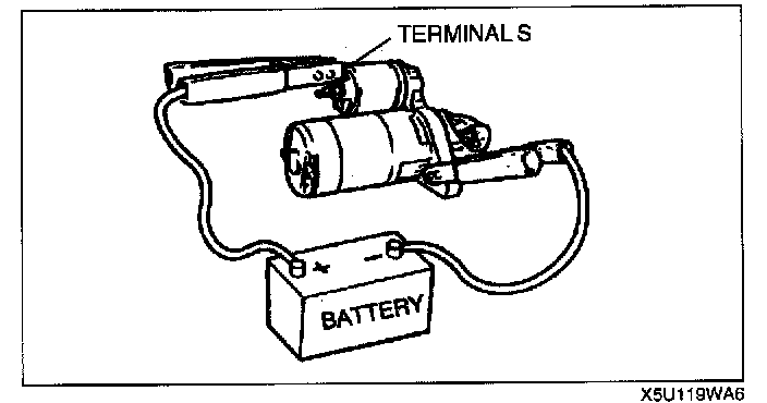 1. Pull out the drive pinion with battery positive voltage connected to terminal S and the starter body grounded.
