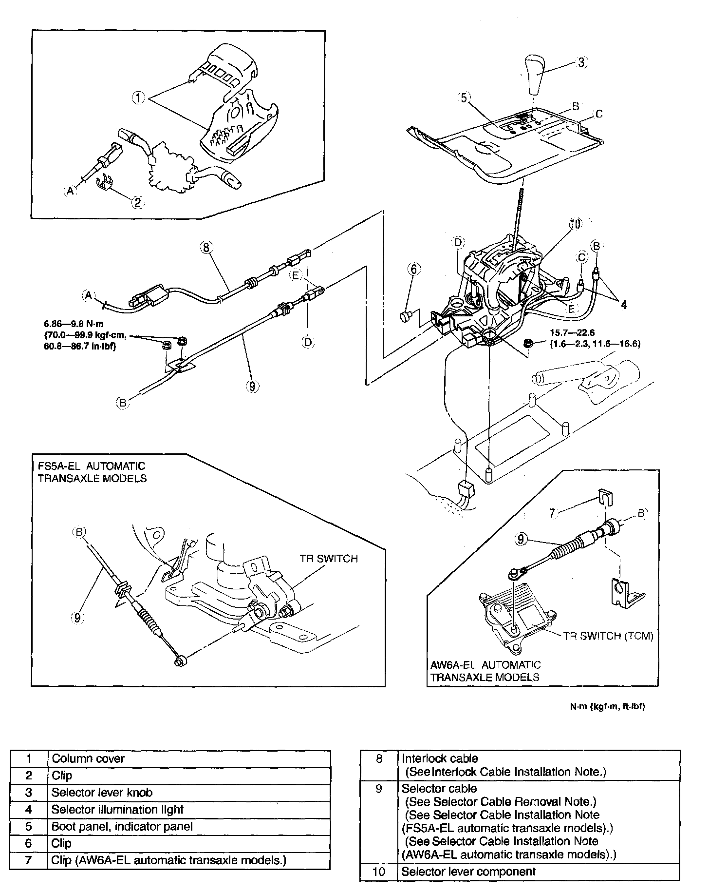 Selector Cable Installation Note (AW6A-EL automatic transaxle models)