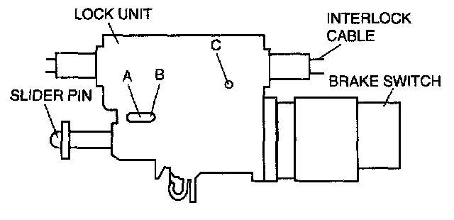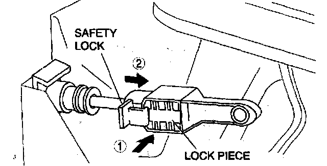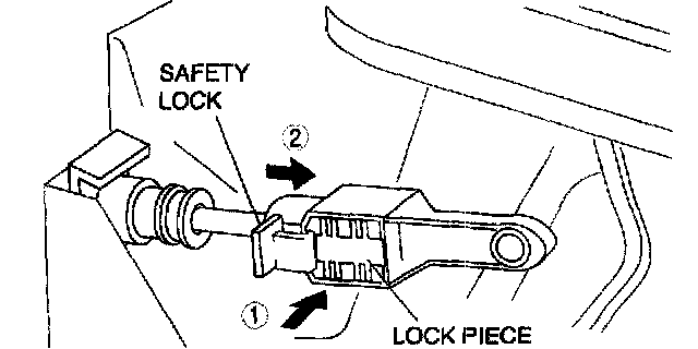^ Applying a load to the interlock cable while pressing the lock piece in can affect the lock unit operation.
