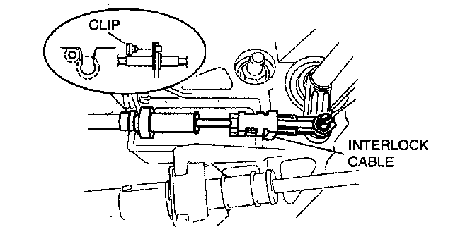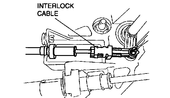 14. Install the interlock cable end to the cam pin on the selector lever.