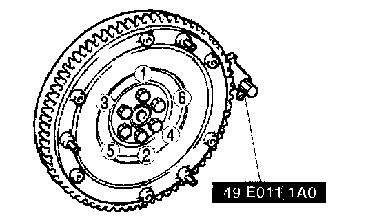 5. Gradually tighten the flywheel lock bolts in a crisscross pattern.