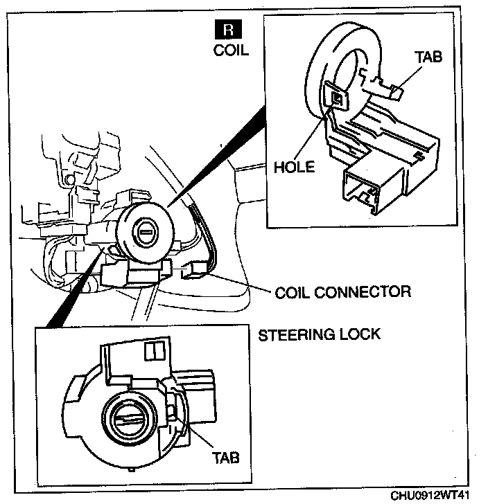 4. Detach the steering lock tab from hole on the coil.