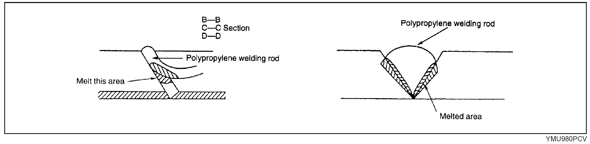 - Take care not to overly melt welding rod. If the part is welded with the welding rod melted like jelly, the welding strength will be reduced.