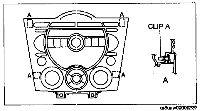 5. Pull the center panel module outward, and then detach clip A from the dashboard.