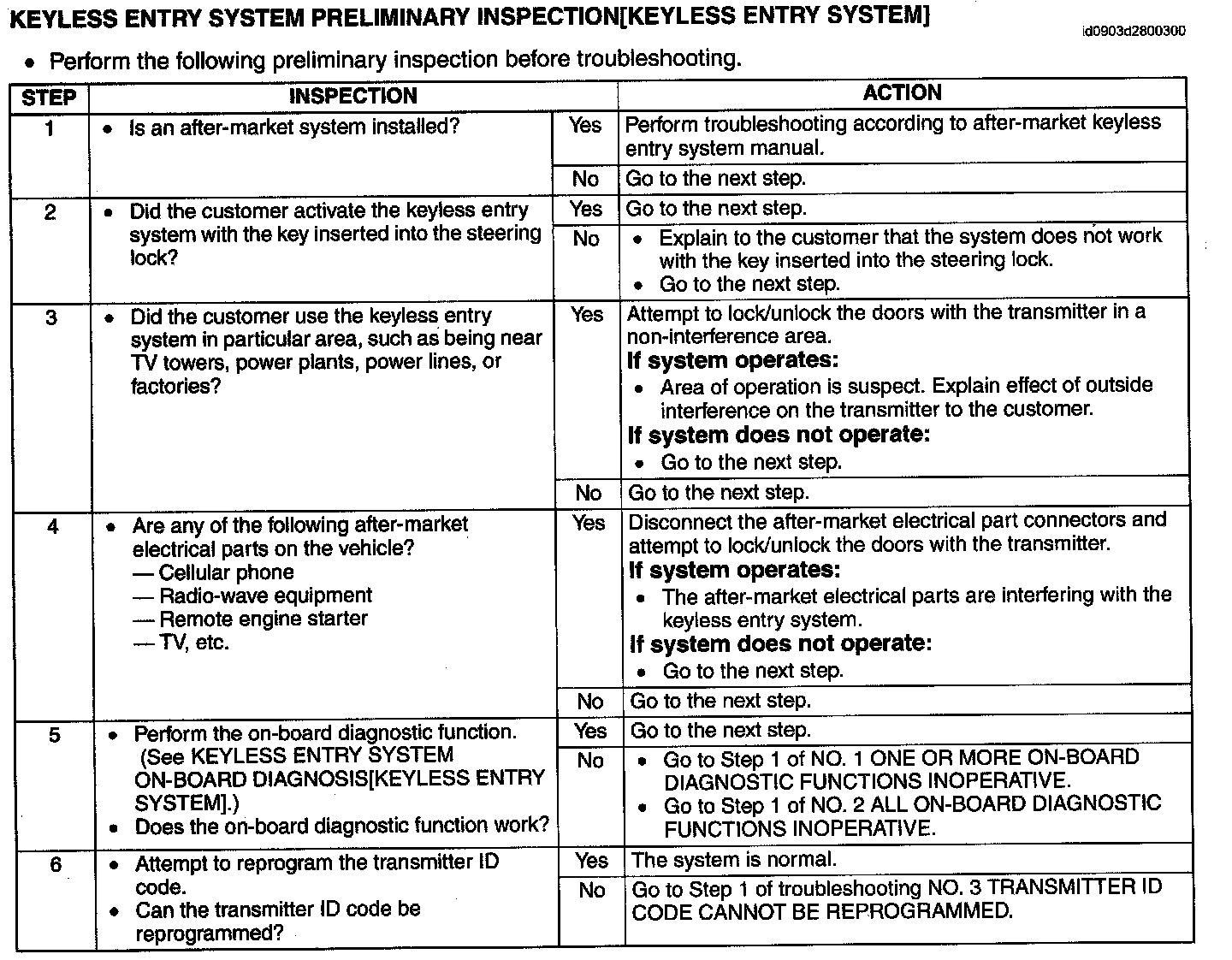 Keyless Entry System Preliminary Inspection[Keyless Entry System]: