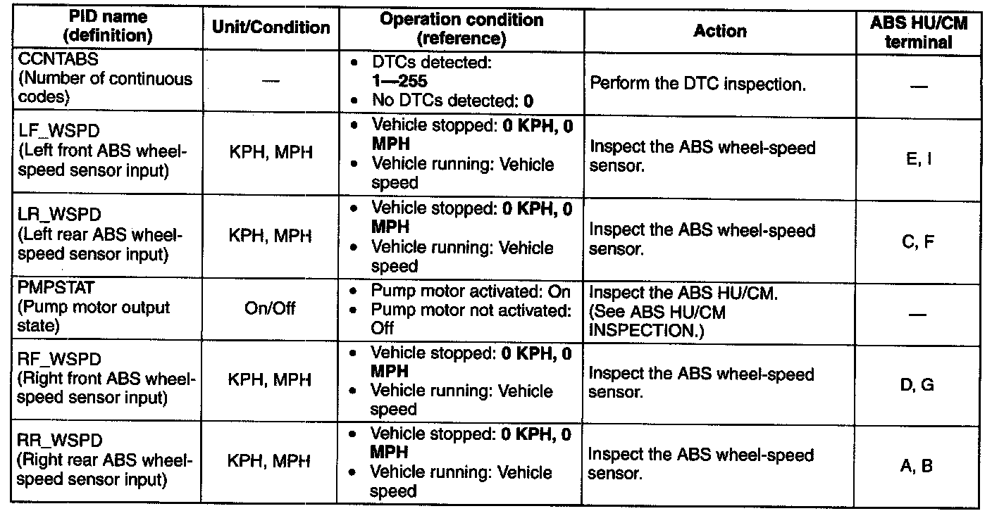 PID/DATA Monitor Table (part 1):