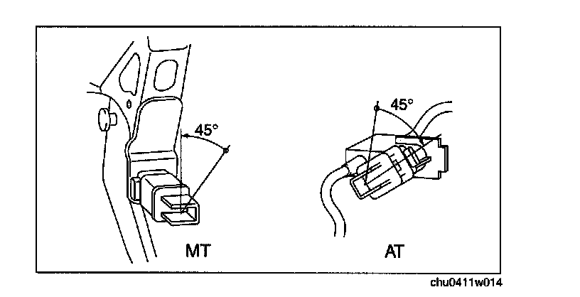 1. Install the new brake switch to the brake pedal (MT) or the interlock cable (AT), and secure it by turning it clockwise 45° (AT) or counterclockwise 45° (MT).