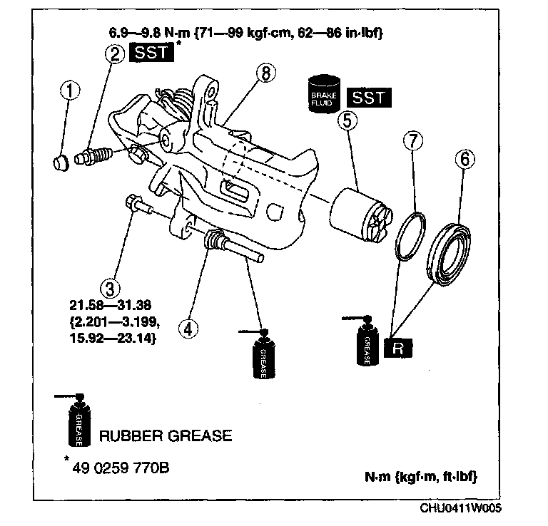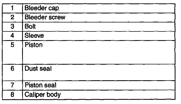 CALIPER (REAR) DISASSEMBLY/ASSEMBLY1. Disassemble in the order indicated in the table.