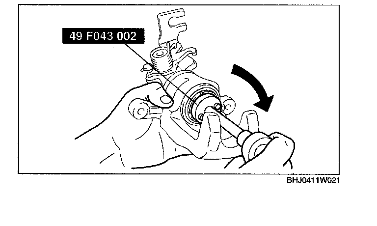 1. Rotate the piston counter-clockwise using the SST, remove the piston from the caliper body.