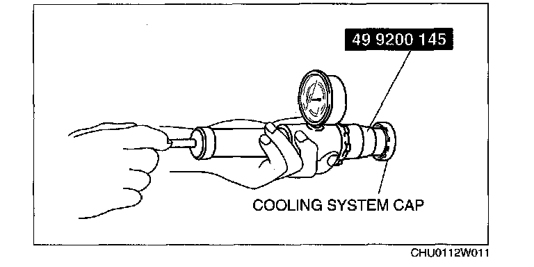 3. Attach the cooling system cap to the SST and a radiator cap tester.