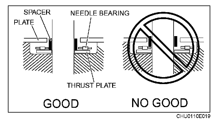 When assembling the spacer, do not allow the spacer to be caught in the needle bearing of the plate.