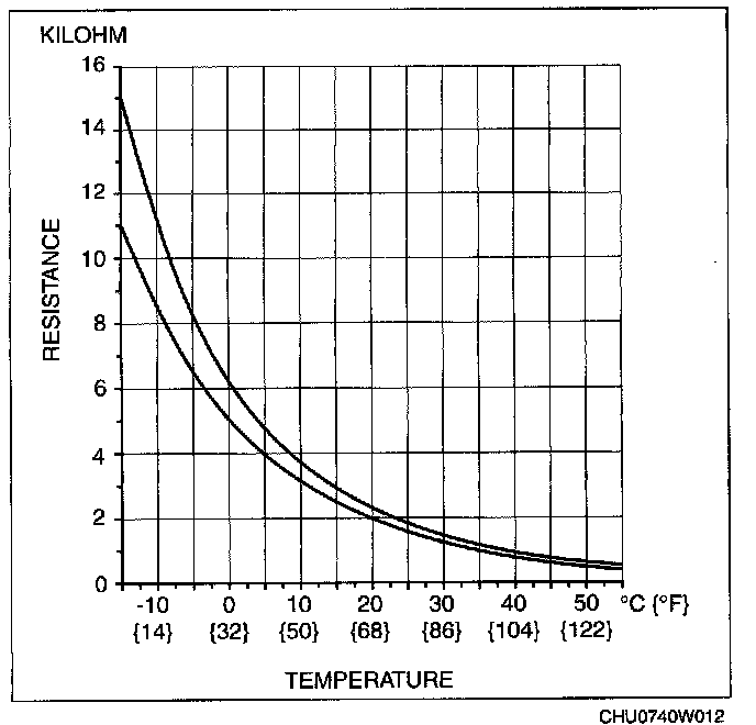 - If the characteristics of the ambient temperature sensor are not as shown in the graph, replace the ambient temperature sensor.