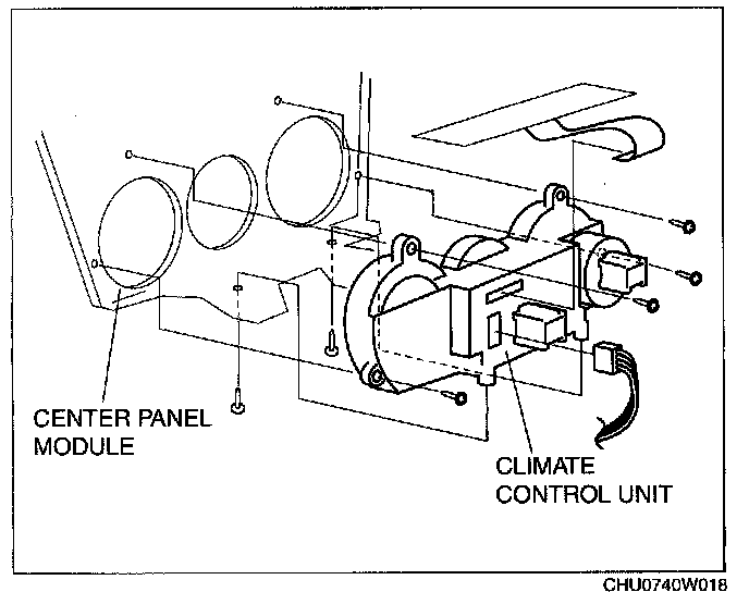 5. Remove the climate control unit from the center panel module.