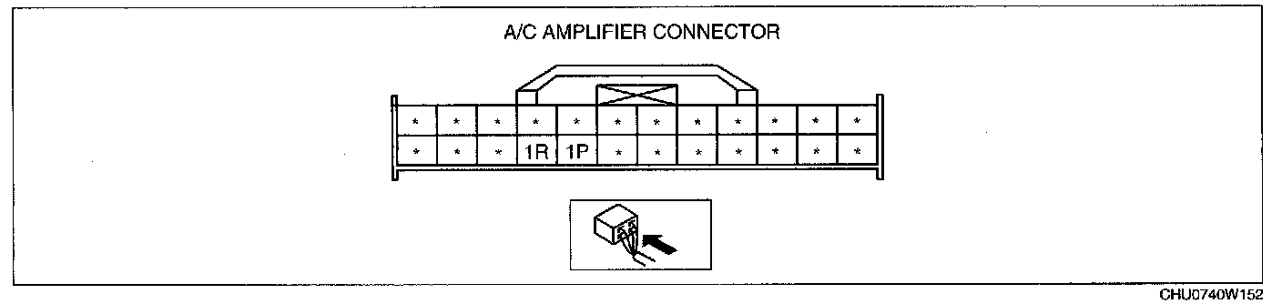 4. Using a jumper wire or a similar device, short circuit A/C amplifier connector (24-pin) terminals 1P and 1R.