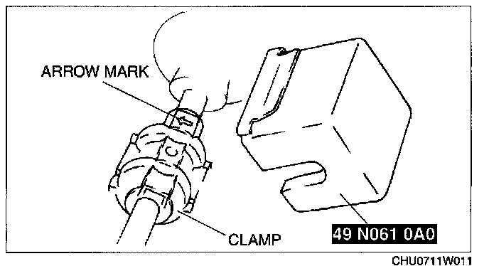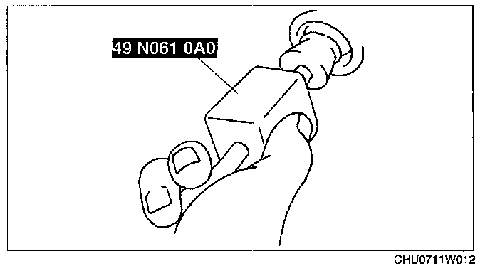 CAUTION: Excessive force to the SST (49 N061 OAO) may damage the clamp. Be careful not to press hard when inserting the SST (49 N061 OAO) into the clamp.