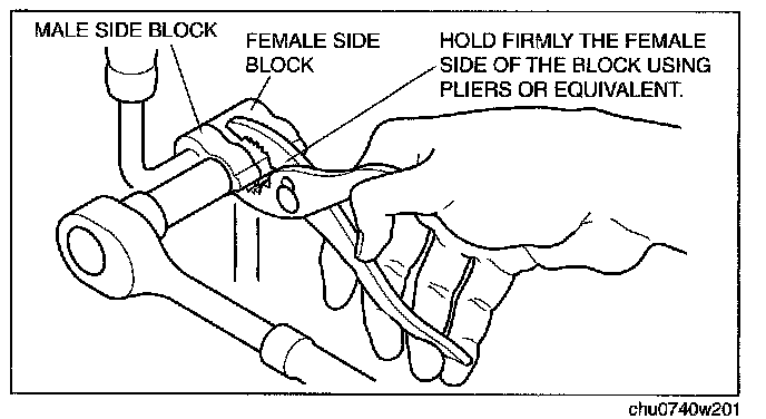 1. Disconnect the block joint type pipes by grasping the female side of the block with pliers or similar tool and holding firmly, and then remove the connection bolt or nut.
