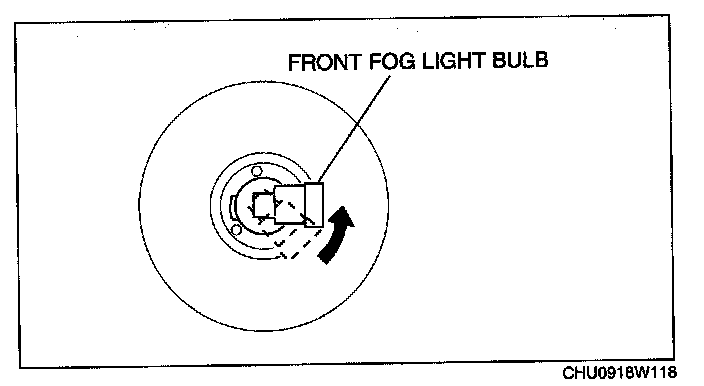 1. Remove the front fog light bulb by turning it in the direction of the arrow.