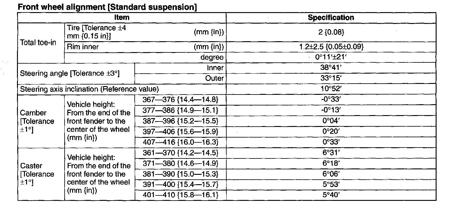 Front wheel alignment [Standard suspension]