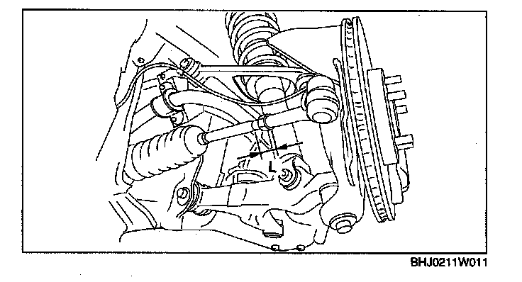 ^ Rotate and adjust the tie rod. The difference between right and left dimension L shown in the figure should be within the specification.
