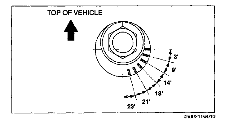 2. Rotate the adjusting cam bolt in either direction to adjust the camber.