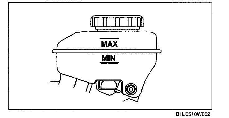 Inspect whether the fluid level in the reserve tank is between MIN and MAX.