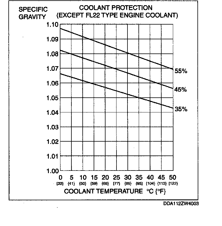 ENGINE COOLANT PROTECTION INSPECTION1. Measure the coolant temperature and specific gravity using a thermometer and a hydrometer.