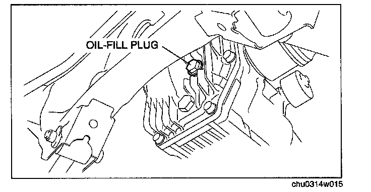 4. If the oil is not close to the rim of the oil-fill plug hole, add oil.