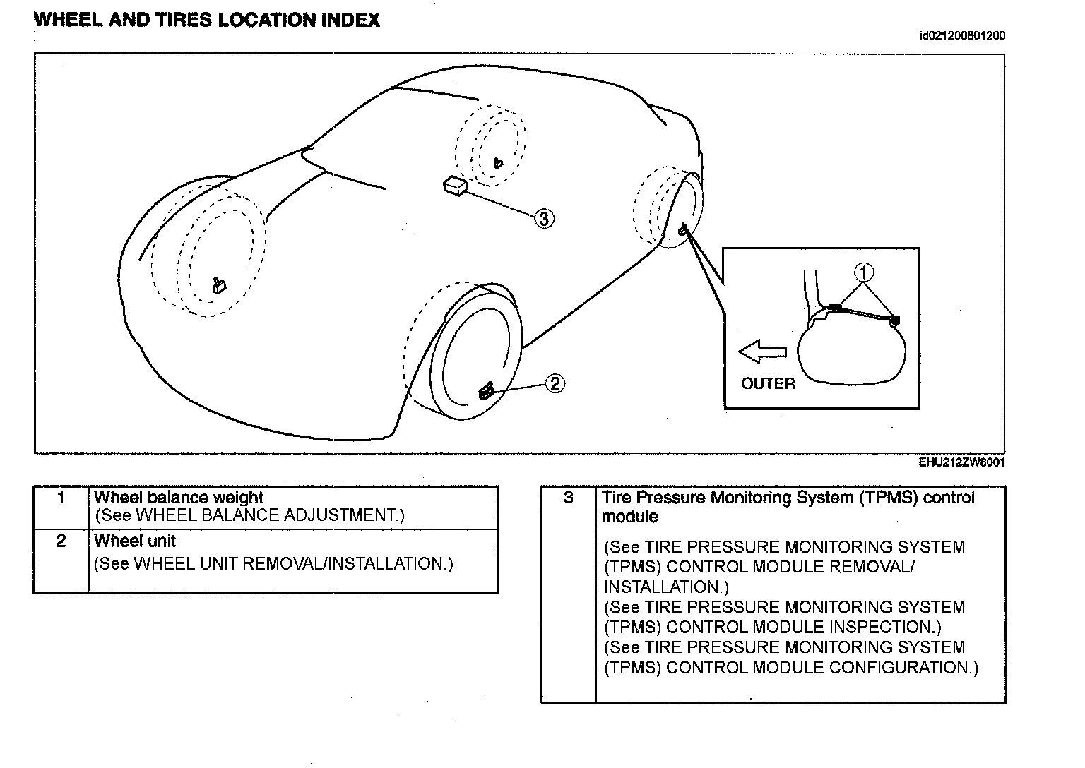 WHEEL AND TIRES LOCATION INDEX