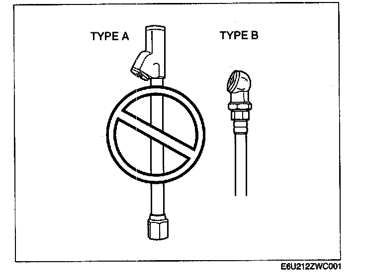 ^ To prevent damage to the valve area of the wheel unit or pressure loss during air pressure adjustment, use a type B tool with a round end as shown in the figure, not a type A tool.