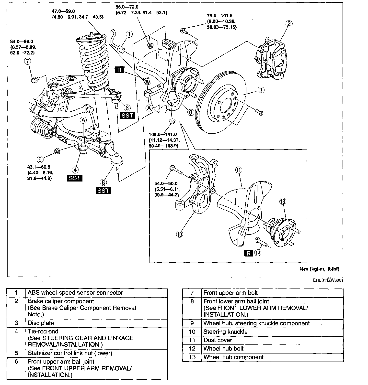 WHEEL HUB, STEERING KNUCKLE REMOVAL/INSTALLATIONCaution: