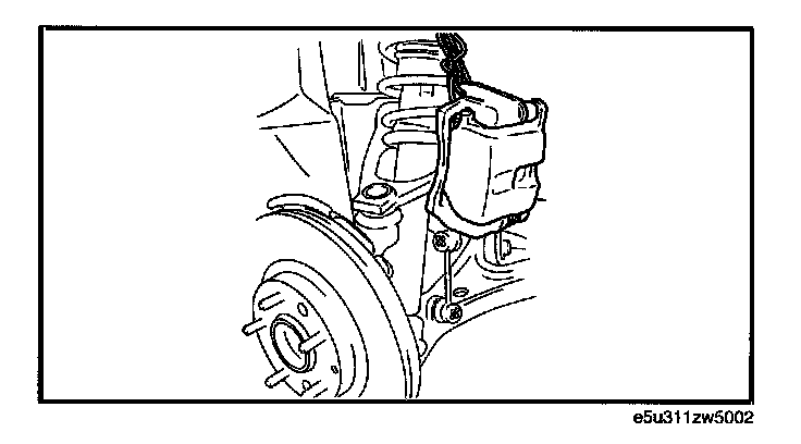 1. Suspend the brake caliper component using a cable or equivalent.