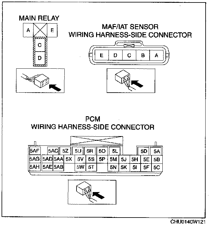 - MAF/IAT sensor terminal B and PCM terminal 5U