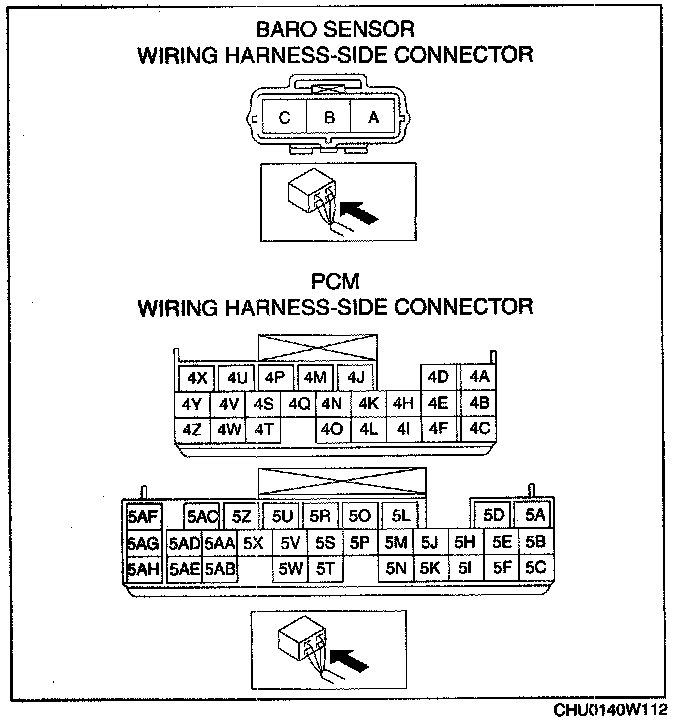 - BARO sensor terminal A and PCM terminal 5S