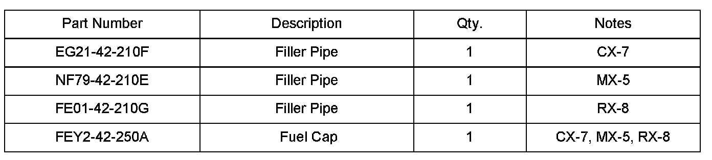 Some fuel filler pipes may be out of specification and in some cases, may not allow the fuel filler cap to be fully tightened. As a mass-production change, the fuel filler pipe and the fuel cap have been modified. Depending on the vehicle VIN range, either the fuel filler pipe and/or fuel cap may need to be replaced.