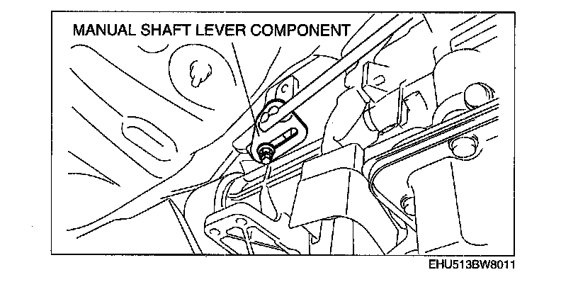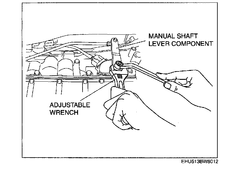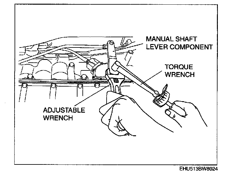 ^ Do not use an impact wrench. Hold the manual shaft lever when removing the manual shaft nut, otherwise the transmission may be damaged.