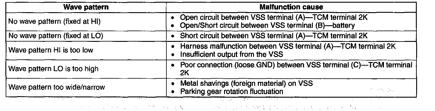 2. Verify the wave pattern of the VSS signal again, and if the malfunction is not resolved, replace the VSS.