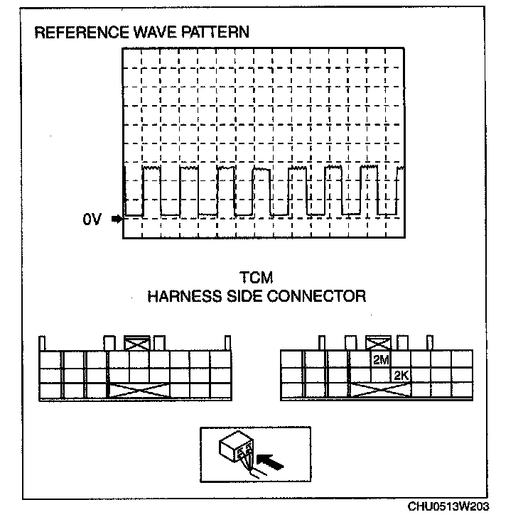 1. Verify using an oscilloscope that the wave pattern for the VSS signal that is input to TCM terminal 2K is the same as the reference wave pattern.