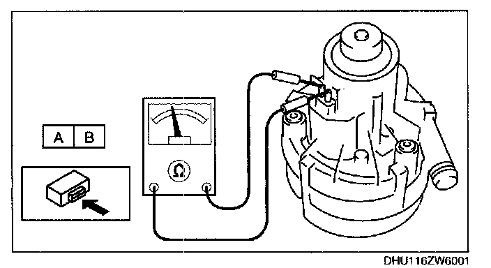 3. Inspect for continuity between the AIR pump terminals A and B.