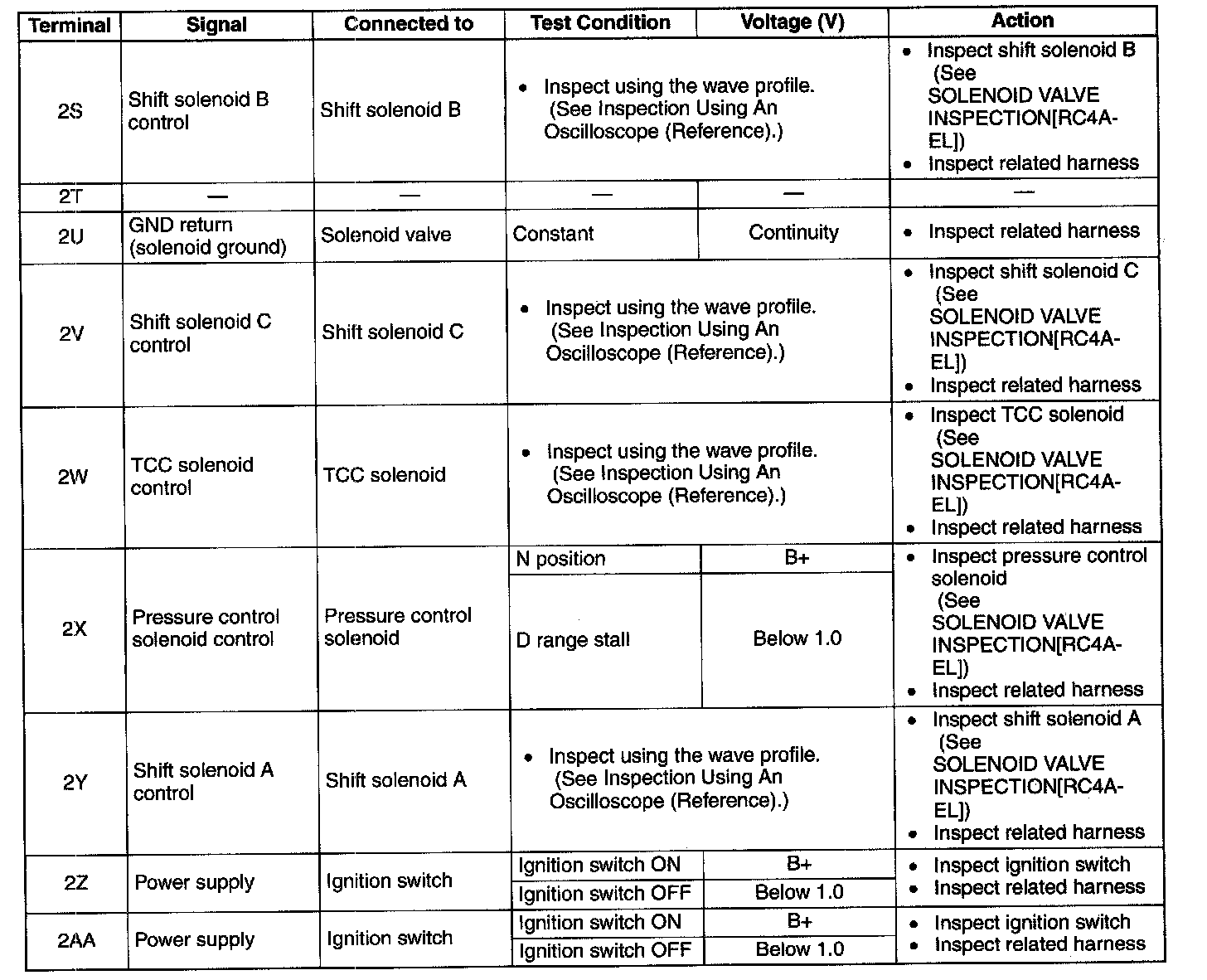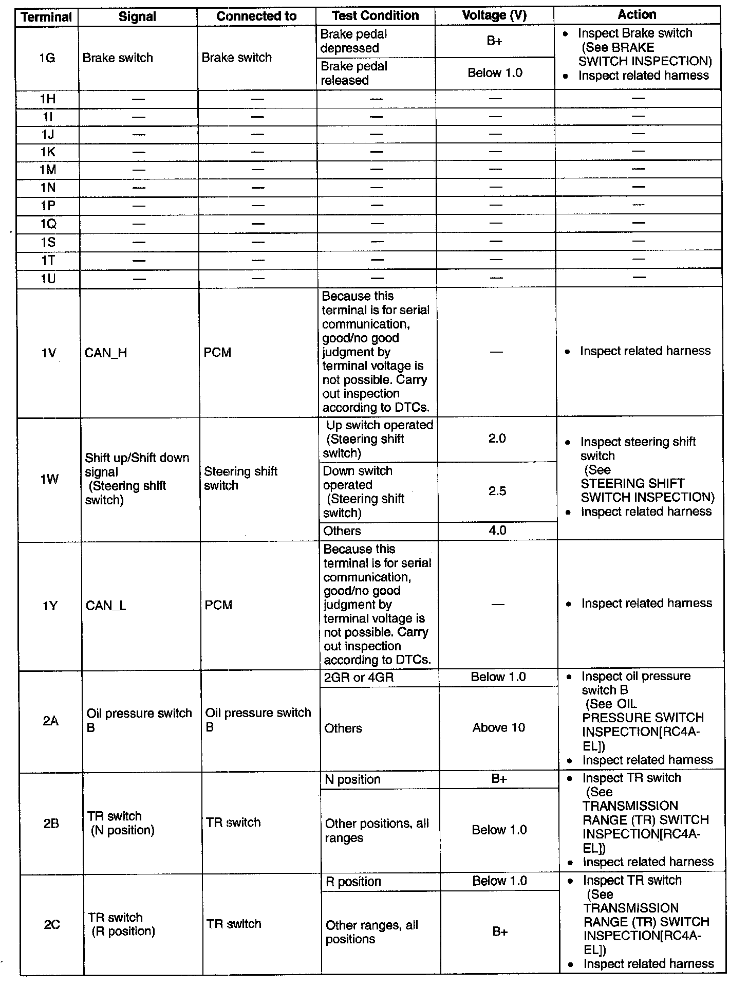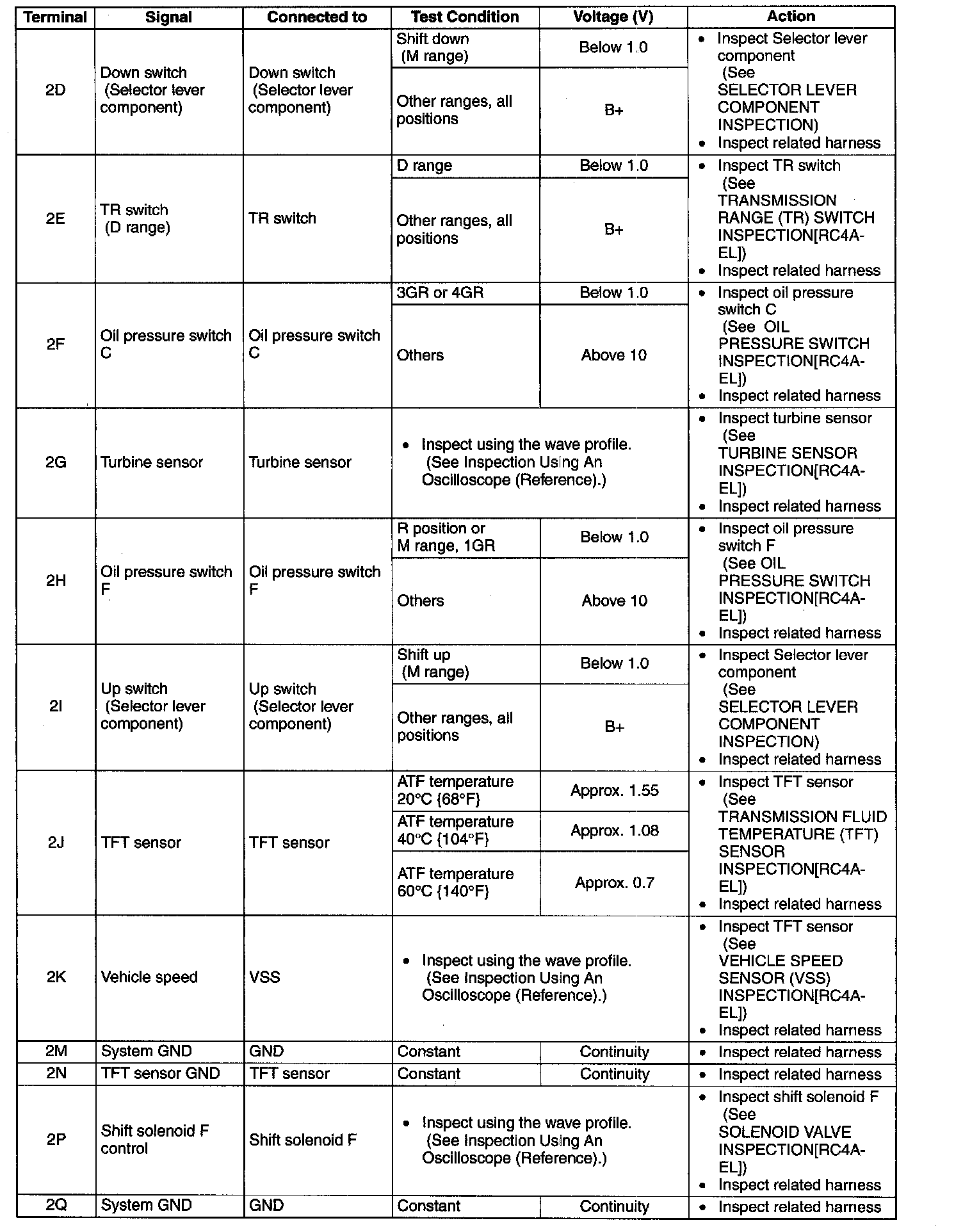 ^ Use the ground of terminal 2M and 2Q of the TCM when measuring terminal voltage, as an error may occur when connecting the negative circuit tester to ground.